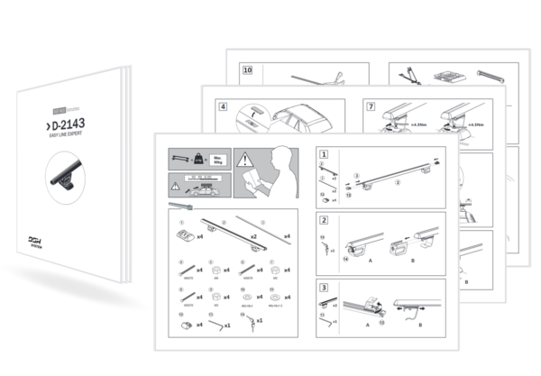 Haben Sie Angst vor einer komplizierten Montage oder unverständlichen Anleitungen? Keine Sorge, dem Dachträger Easy Line Expert™ liegt eine detaillierte, bebilderte Anleitung bei, die alle Teile des Satzes umfasst und Ihnen den gesamten Montagevorgang Schritt für Schritt zeigt.